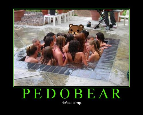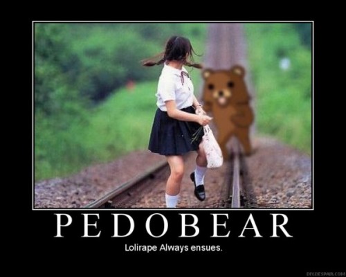 “Stránky venované deťom”, ktoré si u nich objednáte na MDD (1.6.2009), dostanete na jeden rok úplne zadarmo. Háčik je iba v tom, že maskot, ktorého zvolili, je jeden z najznámejších internetových mémov, ktorý má pochybný vzťah k deťom. Pochádza z Japonska a volá sa “kuma” (v preklade medveď). Anglicky hovoriaci ho volajú len “Pedobear“. Väčšinou takto nazývajú tých, ktorý sa skrývajú za nejakým nickom – takto si hľadajú partnerky na chatovanie (prípadne i na niečo iné), ktoré sú o dosť mladšie ako osoba za nickom. Pre ilustráciu, “Pedobear” a deti: