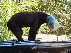 Sad end for bear with jar on head