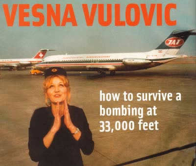 The person to have fallen the greatest distance without a parachute, and survived, is Vesna Vulović, a Serbian air hostess who fell 33,000ft after her JAT airliner was blown up in January 1972.